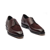 Ingrid-X, Split Toe Blucher Derby - Burgundy Hatch-grain & Suede | Hand Welted Contemporary Classics