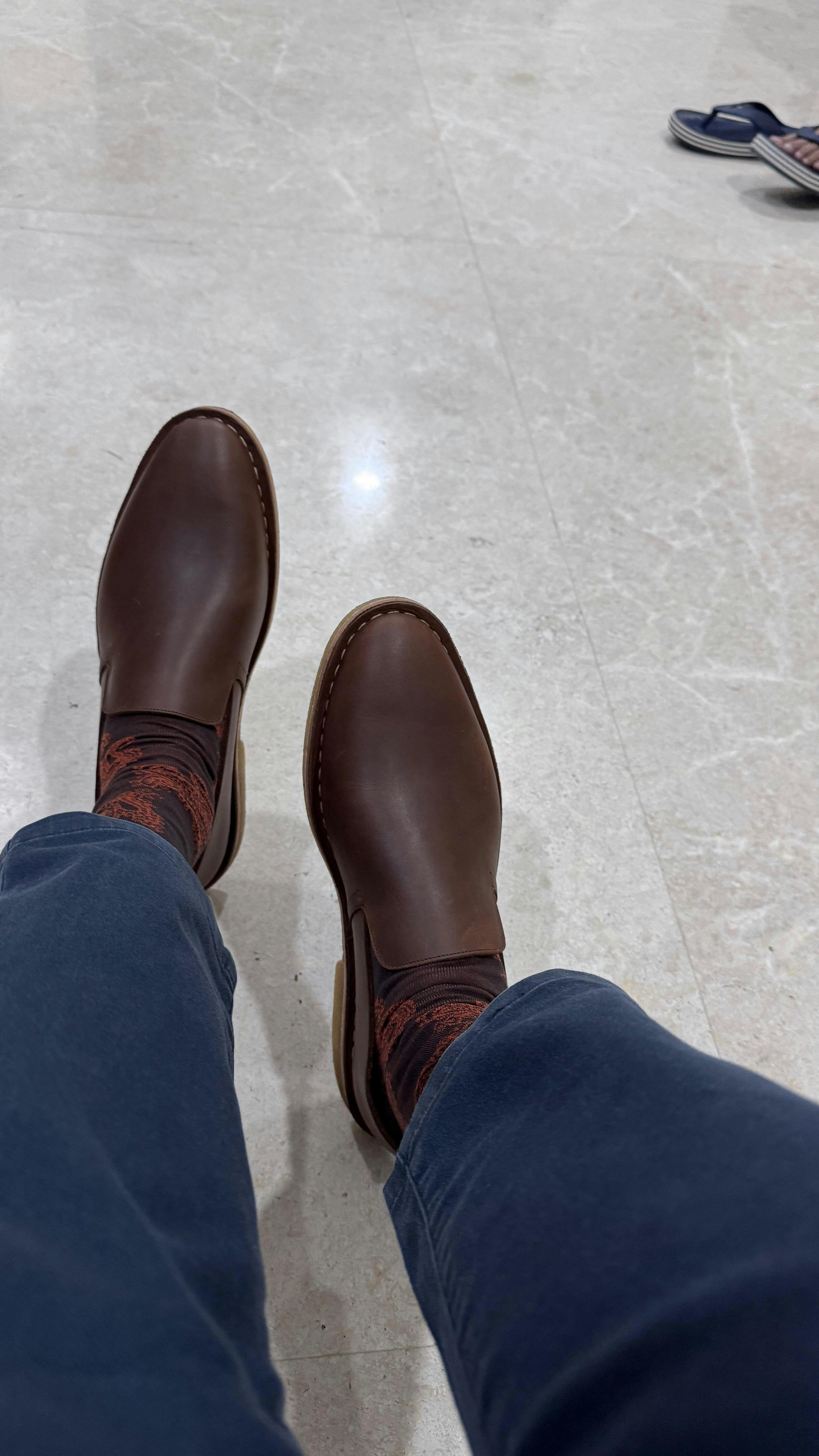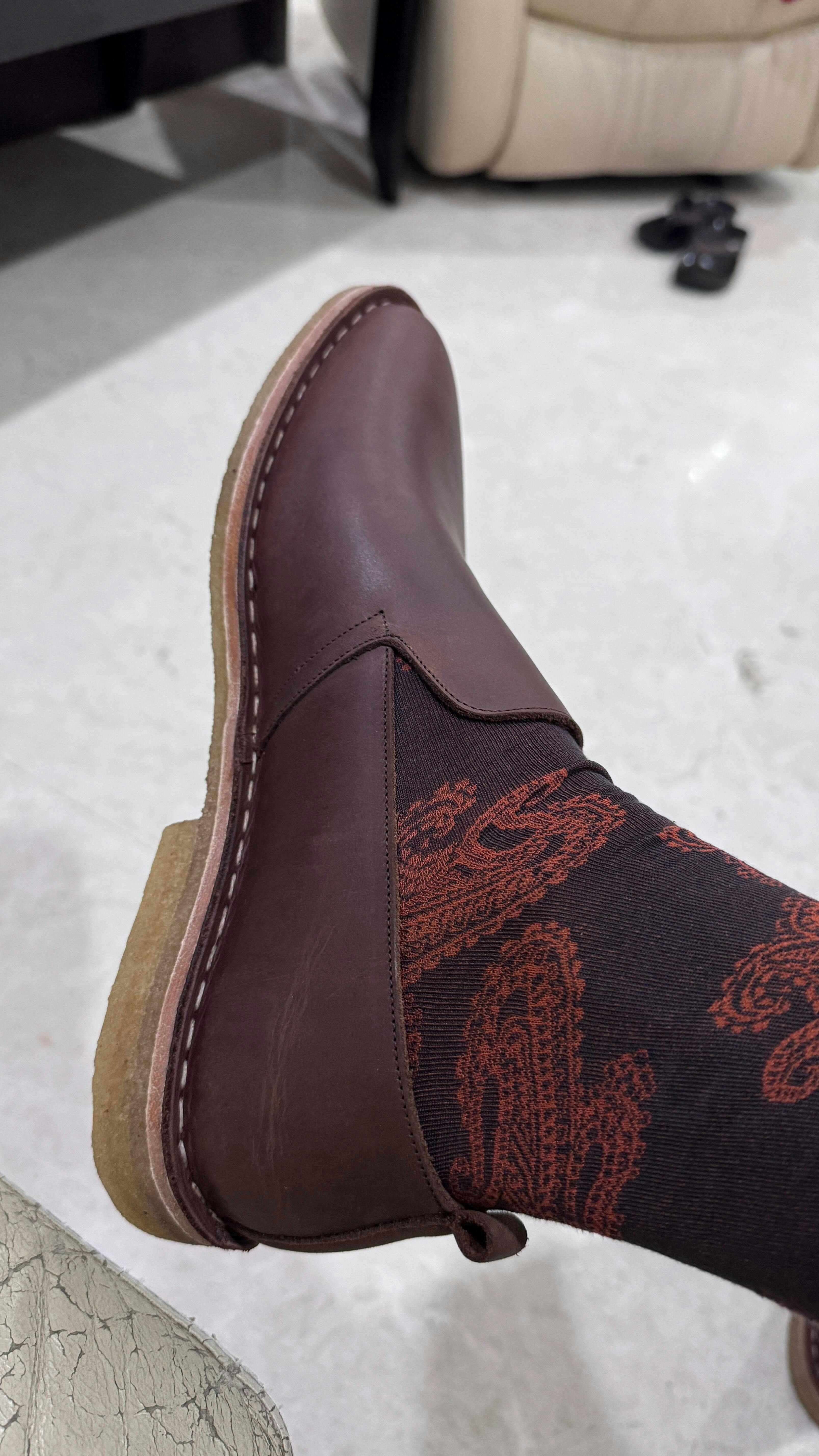 - Flexible Leather insole and Natural Crepe Rubber Sole for utmost comfort